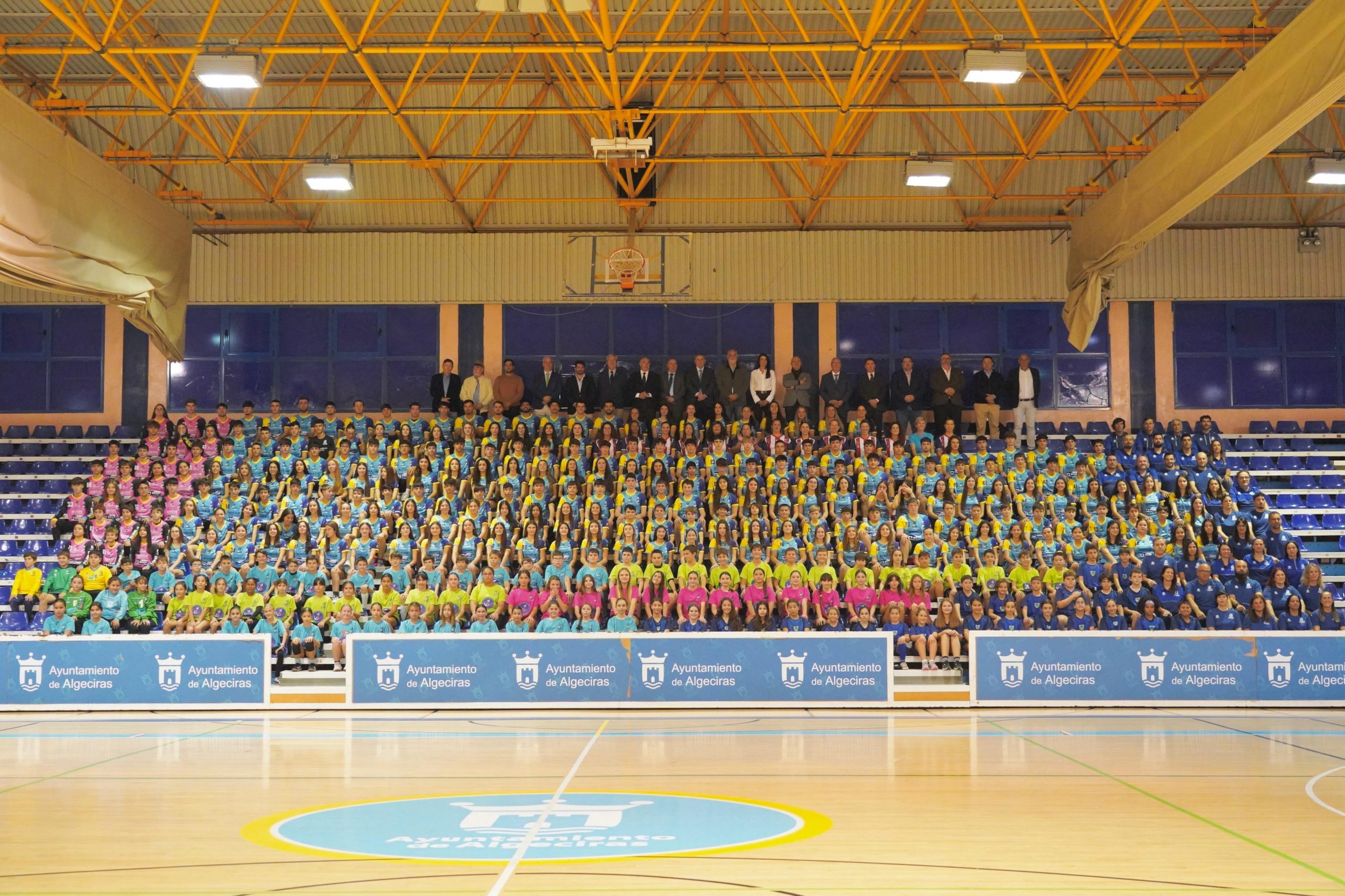 El alcalde de Algeciras, José Ignacio Landaluce, junto con el teniente de alcalde delegado de Deportes, Jorge Juliá, ha asistido a la tradicional toma de la foto oficial del los componentes de todas las categorías que se incluyen en el Club Balonmano “Ciudad de Algeciras”, que se lleva a cabo una vez entrada la temporada oficial, en este caso la temporada 2024-25.