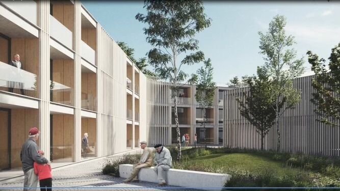 El complejo estará integrado por ese centro de mayores y un sistema de espacios libres sobre una parcela de algo más de 45.000 metros cuadrados en la que se construirán cuatro edificios unidos por dos núcleos de comunicación vertical, dos pasarelas, y mediante una pasarela en la primera planta.