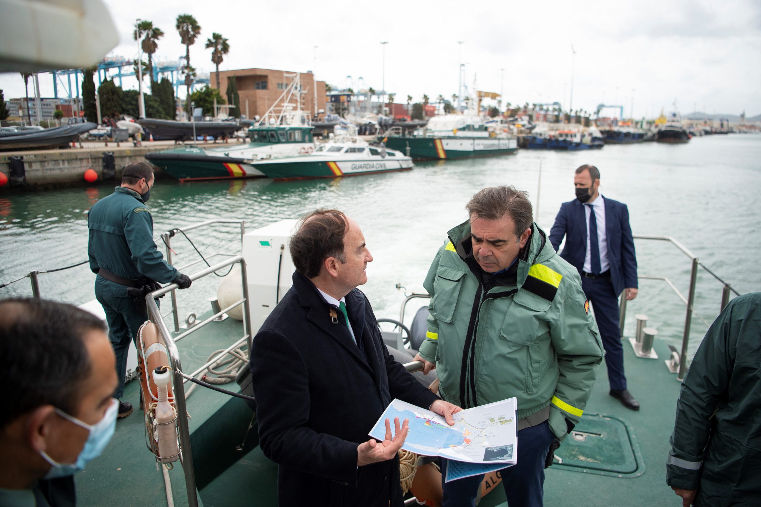 El Puerto de Algeciras ha recibido en las últimas horas la visita del vicepresidente de la Comisión Europea, Margaritis Schinas, que acompañado por la directora general de la Guardia Civil, María Gámez. El presidente de la Autoridad Portuaria de Algeciras, Gerardo Landaluce, les ha acompañado en recorrido por las instalaciones de la Bahía. Entre otros asuntos, el presidente del puerto ha abordado con Schinas los principales asuntos que está ahora tramitando la Unión Europea y que afectan de forma directa al futuro de la primera dársena española. Es el caso del denominado Emissions Trading System (ETS), que gravará las emisiones de los buques que escalen en puertos europeos con el objetivo de reducir las emisiones. Sin embargo tal y como está planteada la propuesta inicial de la Comisión, la norma podría provocar el efecto contrario, la creación de paraísos fiscales e incluso un aumento de las emisiones.