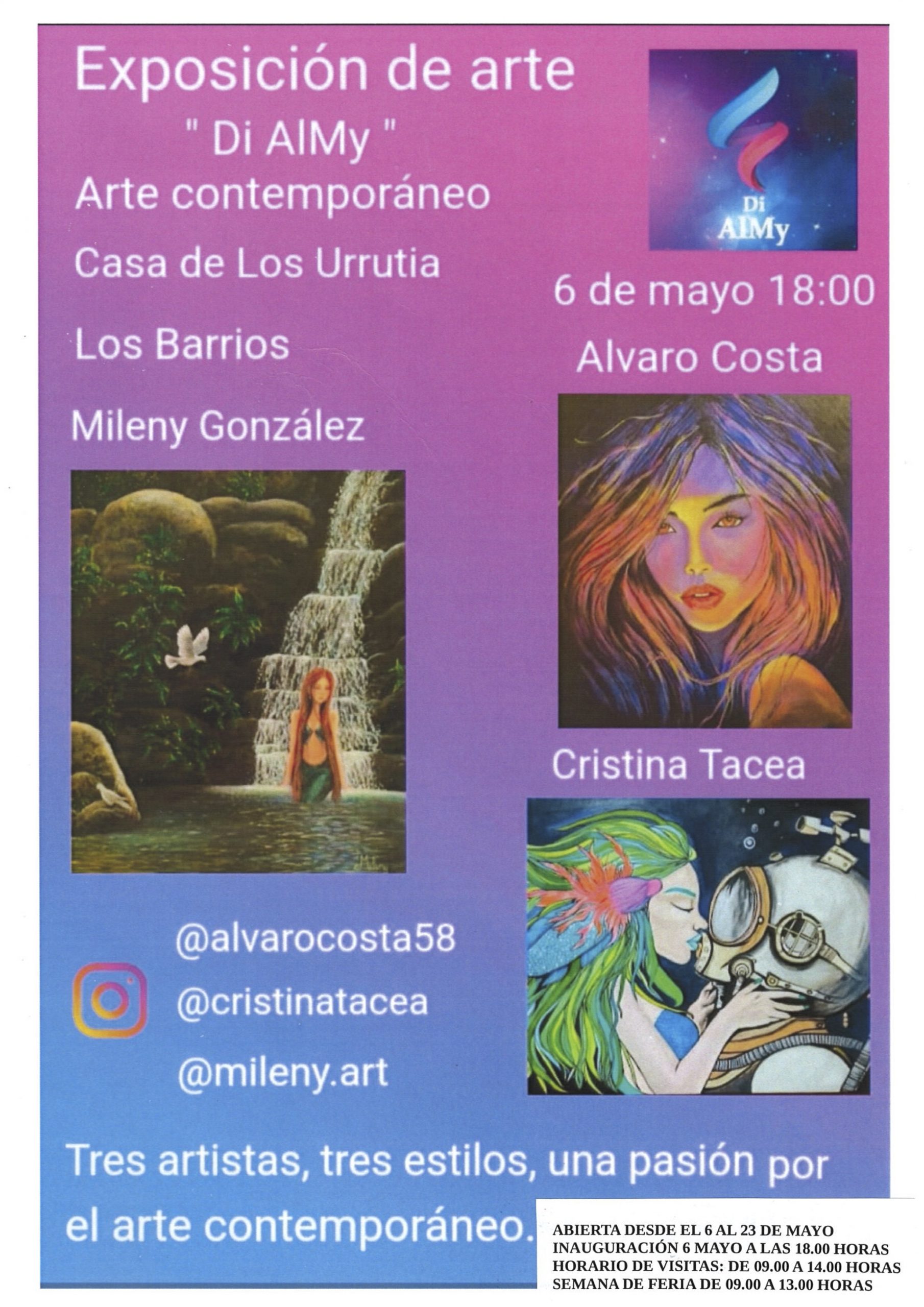 La Casa Urrutia acogerá a partir de la próxima semana la muestra de arte contemporáneo “Di Almy”. Una cita que reunirá en este edificio emblemático de la localidad la producción pictórica de Álvaro Costa, Mileny González y Cristina Tacea.