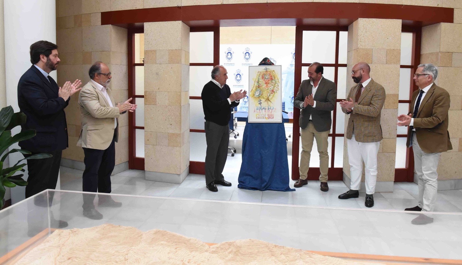 El alcalde, José Ignacio Landaluce, ha acompañado a la Hermandad del Rocío de Algeciras, con su hermano mayor Javier Vega a la cabeza, en la presentación del cartel anunciador de la Romería 2023 que ha tenido lugar en la Casa Consistorial.