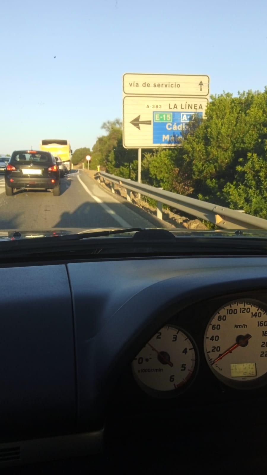 *Unas 200 personas han cortado esta mañana la carretera CA-34 a la altura del acceso a la empresa Moeve en San Roque provocando colapsos en la A-7 y en el acceso a La Línea por el Higuerón