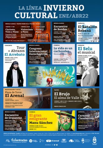 Entre los meses de enero y abril, la agenda cultural se centrará en tres espacios escénicos: Teatro Paseo de La Velada, Palacio de Congresos y Plaza El Arenal.