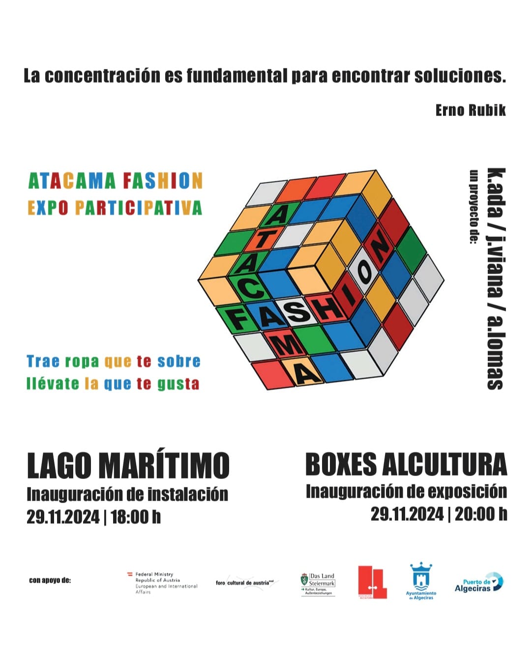 Un proyecto del FOCULTURAL DE AUSTRIA, con la colaboración y asistencia a la producción de BOXES ALCULTURA – Centro de creación contemporánea y con la colaboración de la Concejalía de Cultura del Ayto. de Algeciras
